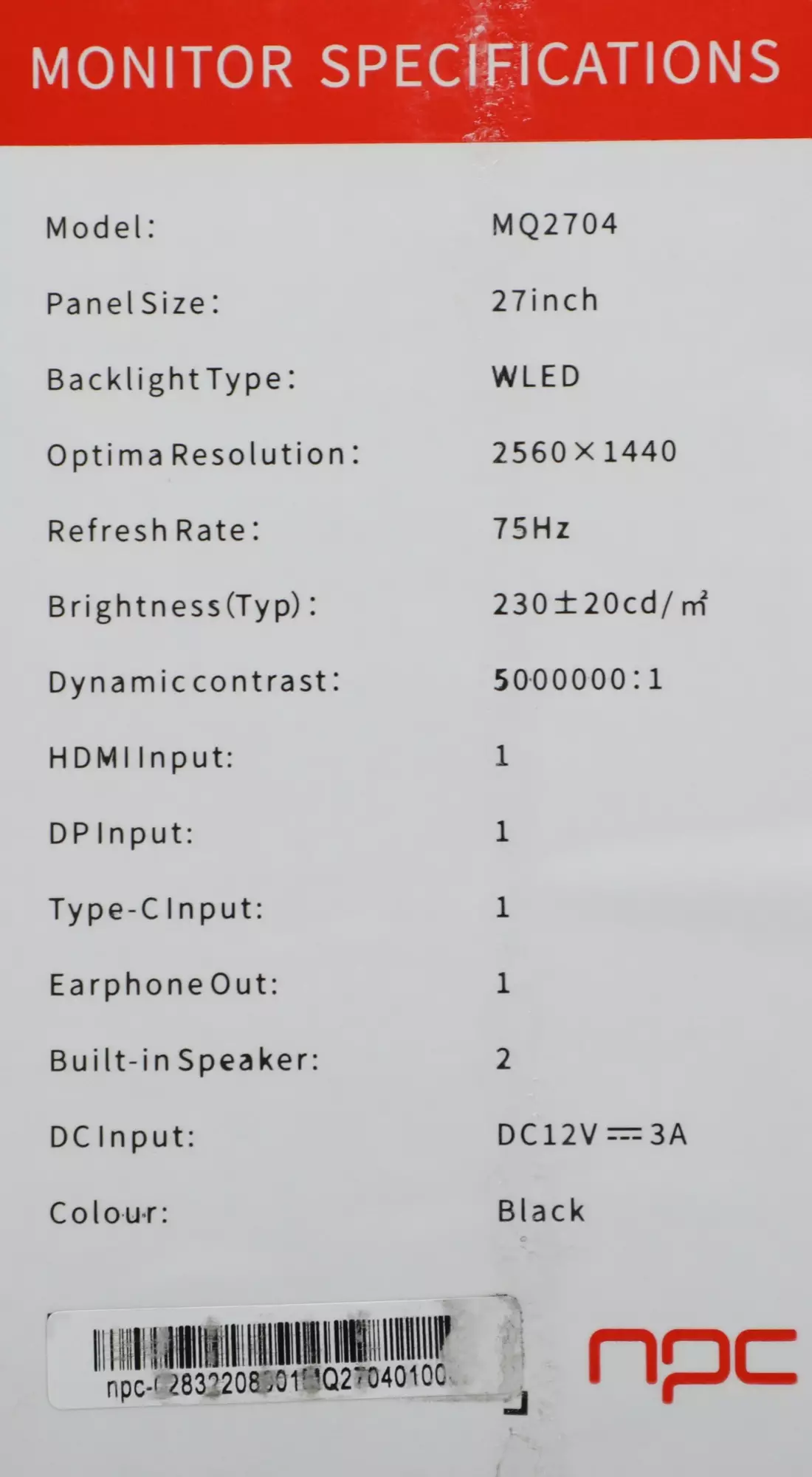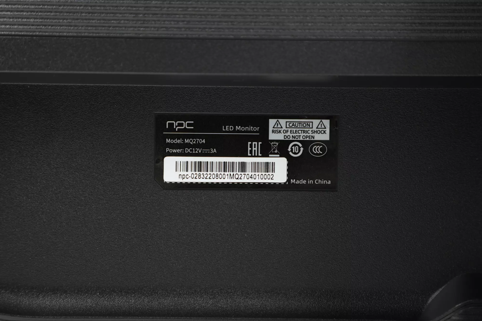 Монитор 27" NPC MQ2704, 2560х1440, 75 Гц, IPS, черный