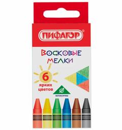 Восковые мелки ПИФАГОР, НАБОР 6 цв.,