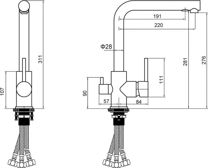 • Длина (вылет) излива 210 — 210 мм