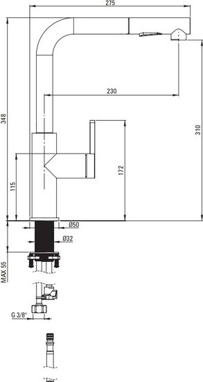 • Выдвижной/гибкий излив с аэратором