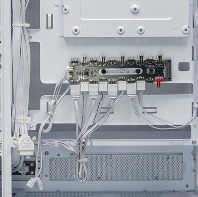 Расположение вентиляторовспереди:1x120 ммсверху:3x120 мм или 2x140 ммснизу:3x120 ммсбоку (на стороне мат. платы):3x120 ммсзади:1x120 ммустановлены:сбоку (на стороне мат. платы):3x120 ммсзади:1x120 мм