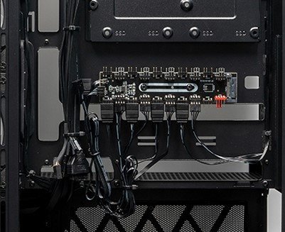 Расположение вентиляторовспереди:1x120 ммсверху:3x120 мм или 2x140 ммснизу:3x120 ммсбоку (на стороне мат. платы):3x120 ммсзади:1x120 ммустановлены:сбоку (на стороне мат. платы):3x120 ммсзади:1x120 мм