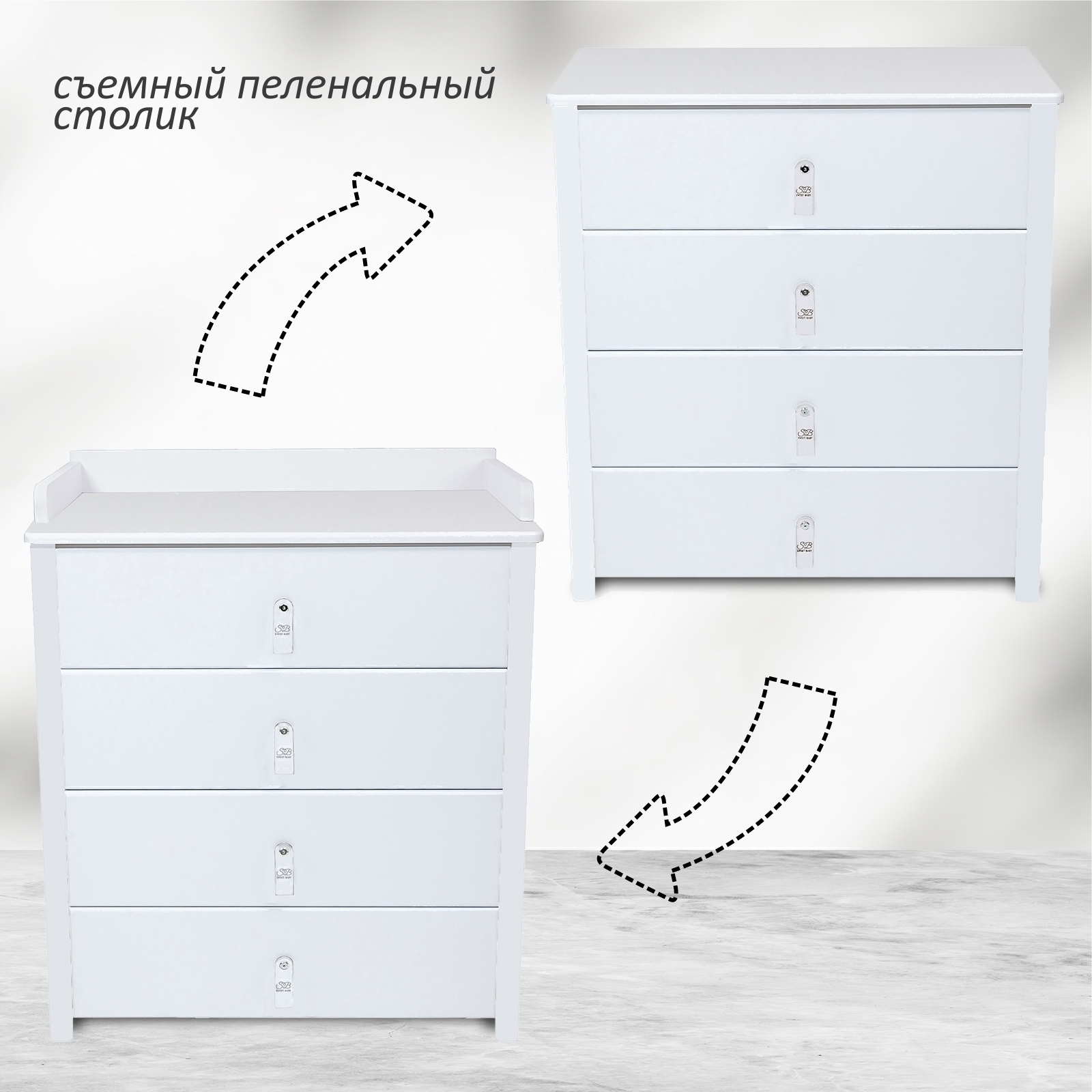 • Конструкция пеленального столика накладная (съемная)