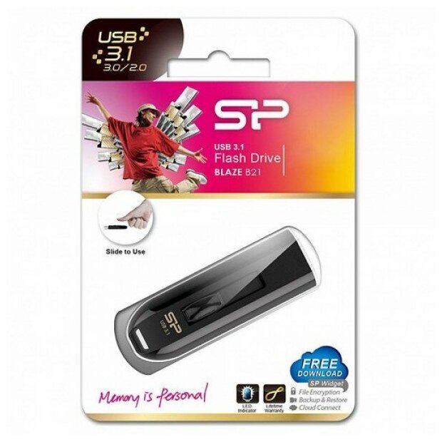 USB-флешка Silicon Power Blaze B21 SP128GBUF3B21V1K, 128Gb USB 3.2, Черный