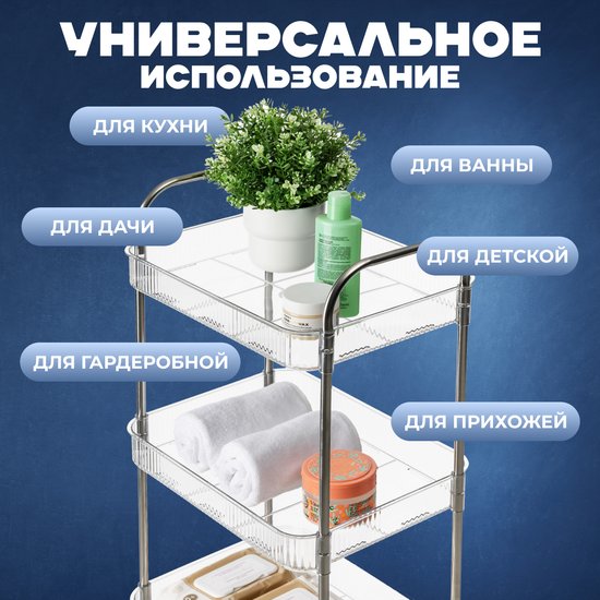 ✅ Этажерка MPP1024-3 — это идеальное решение для хранения различных предметов в вашем доме или офисе. Благодаря прочной конструкции из нержавеющей стали и полипропилена, она устойчива к влаге и подходит для использования в любых условиях, включая влажные помещения. ✅ Универсальный дизайн этажерки легко вписывается в любой интерьер, а три вместительные полки позволяют разместить до 3 кг на каждую из них. Мобильность обеспечивается благодаря колесикам, что делает перемещение этажерки простым и удобным.✅ Эта этажерка идеально подходит для хранения мелких бытовых предметов, офисных принадлежностей и других вещей. Компактные размеры позволяют использовать ее даже в ограниченных пространствах, а легкость сборки и транспортировки делает ее еще более привлекательной.⚠️ Этажерка на колесах с тремя полками станет незаменимым помощником в организации порядка в вашем помещении. Она добавляет функциональность и стиль, обеспечивая удобное хранение и легкость перемещения по комнате.✅ Этажерка MPP1024-3 — это идеальное решение для хранения различных предметов в вашем доме или офисе. Благодаря прочной конструкции из нержавеющей стали и полипропилена, она устойчива к влаге и подходит для использования в любых условиях, включая влажные помещения. ✅ Универсальный дизайн этажерки легко вписывается в любой интерьер, а три вместительные полки позволяют разместить до 3 кг на каждую из них. Мобильность обеспечивается благодаря колесикам, что делает перемещение этажерки простым и удобным.✅ Эта этажерка идеально подходит для хранения мелких бытовых предметов, офисных принадлежностей и других вещей. Компактные размеры позволяют использовать ее даже в ограниченных пространствах, а легкость сборки и транспортировки делает ее еще более привлекательной.⚠️ Этажерка на колесах с тремя полками станет незаменимым помощником в организации порядка в вашем помещении. Она добавляет функциональность и стиль, обеспечивая удобное хранение и легкость перемещения по комнате.