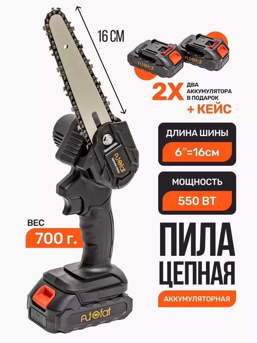 Цепная садовая пила аккумуляторная ручная