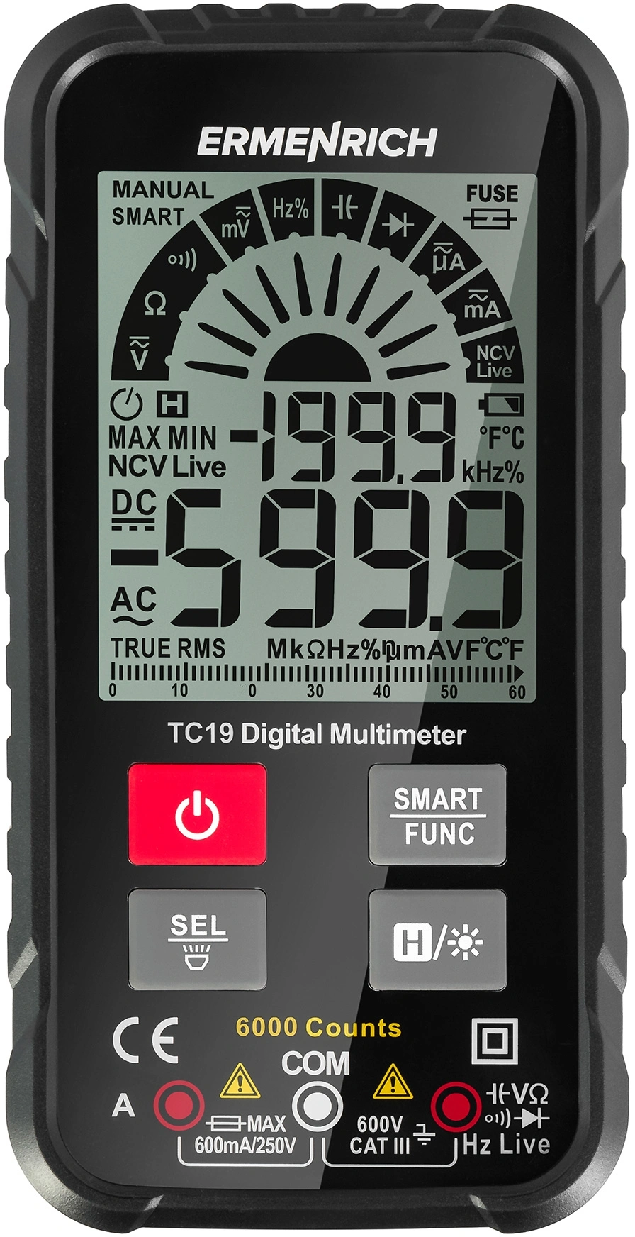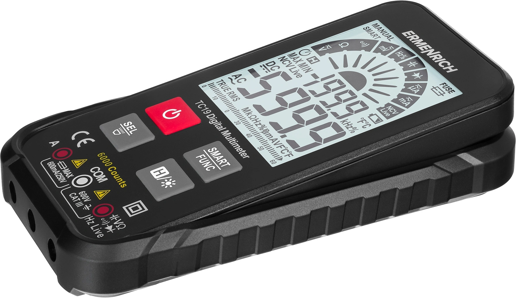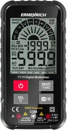 • Описание Функции: вольтметр, амперметр, омметр, фарадометр, частотомер, измеритель рабочего цикла, прозвонка, тест диодов, NCV, детектор фазы. Автоматический выбор предела измерения.