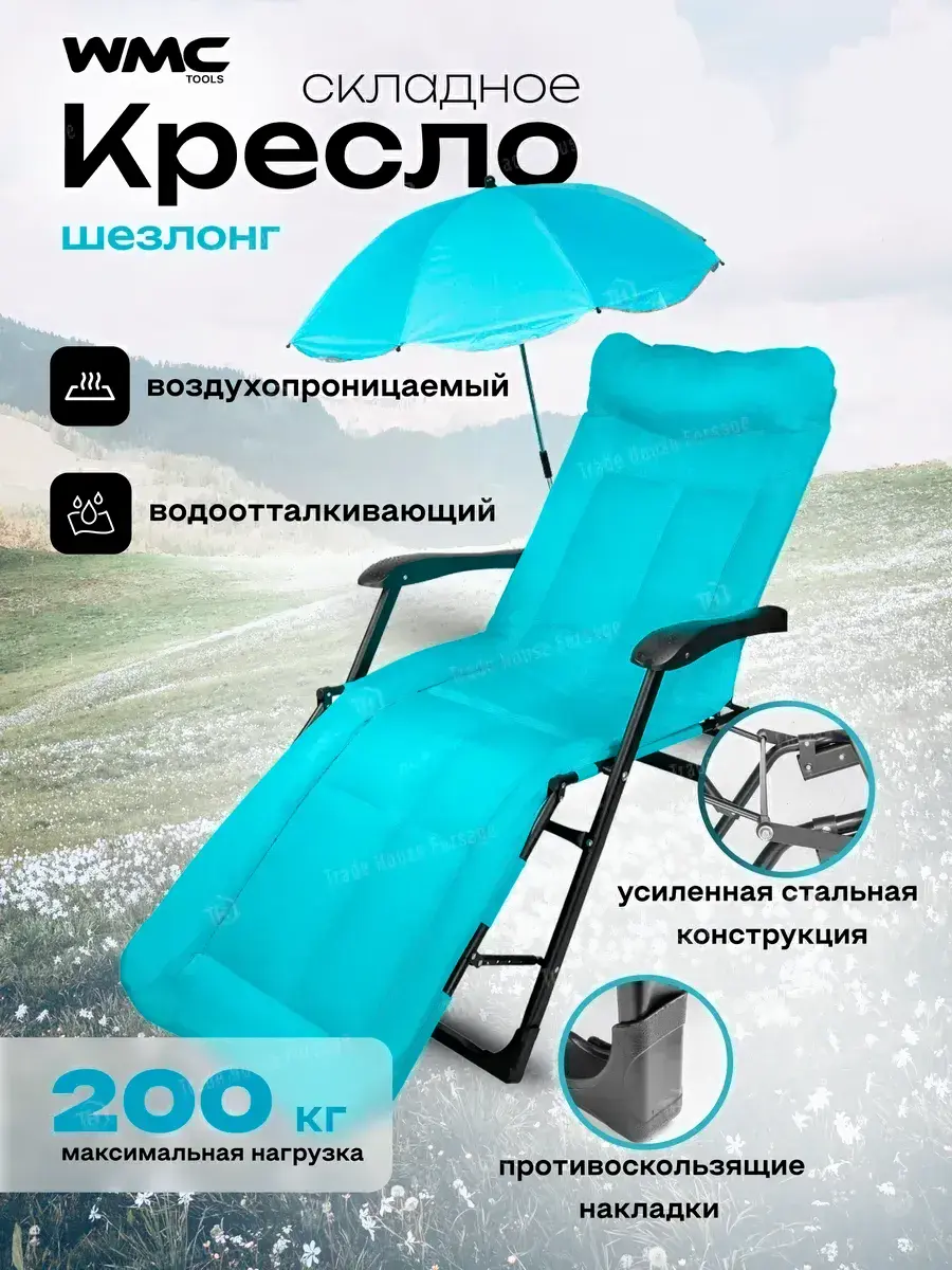Складной шезлонг WMC Tools WMC-FG-HY-8000LB-Z (60300), (голубой)