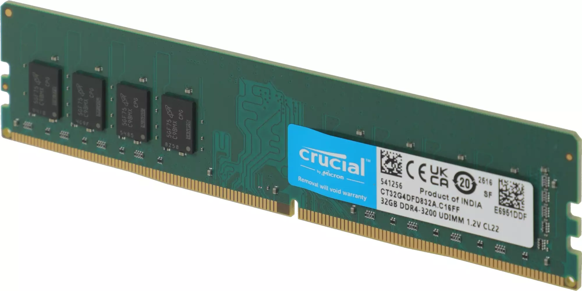 Оперативная память Crucial DDR4 - 32GB, 3200 МГц, DIMM, CL22, RTL (ct32g4dfd832a)