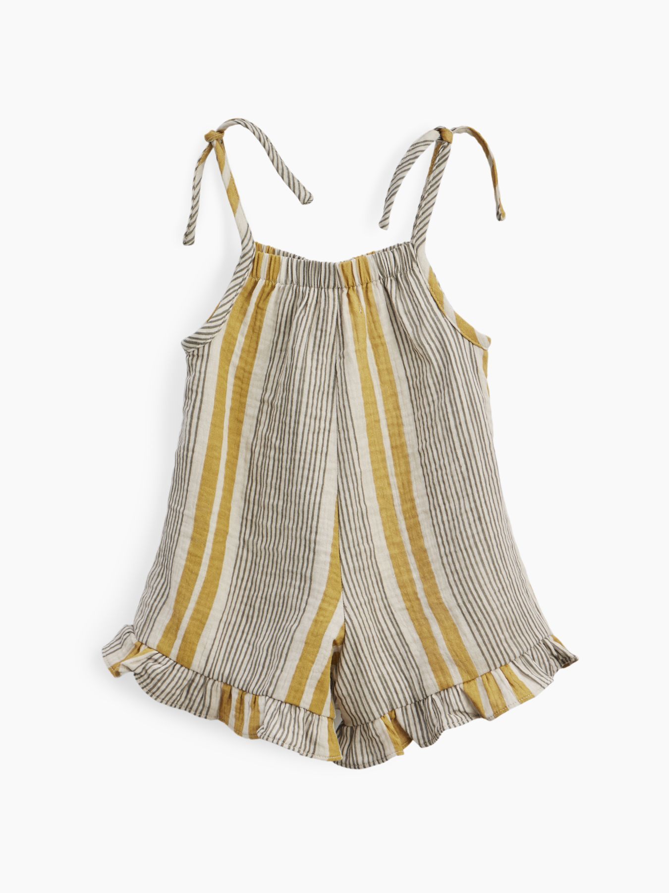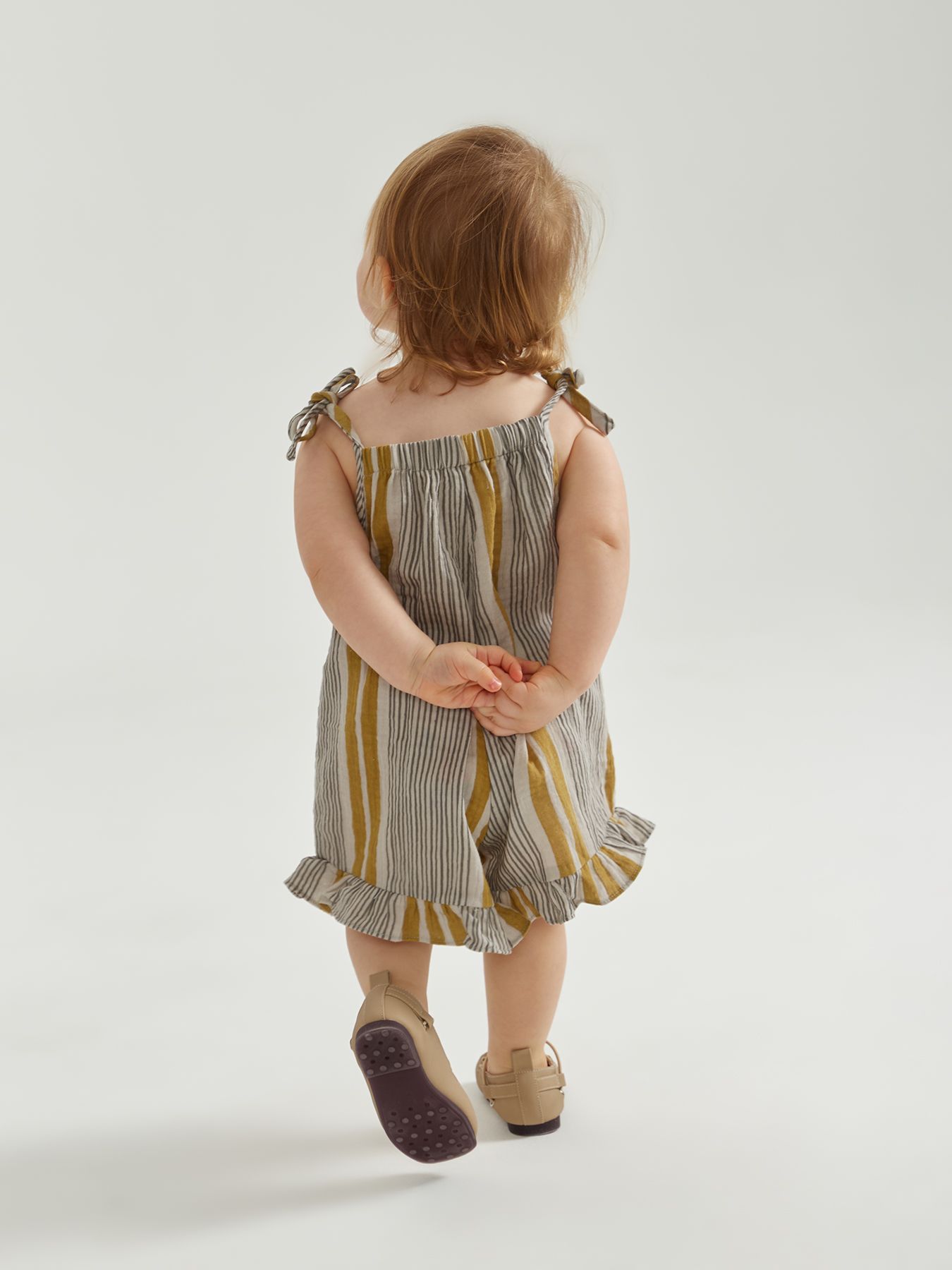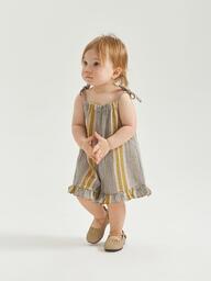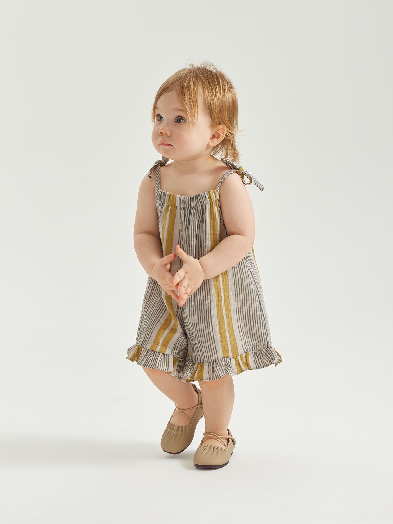 Летний комбинезон – одна из самых удобных вещей для самых маленьких. Свободный крой не сковывает движения, есть пространство под подгузник. Благодаря завязкам можно легко отрегулировать посадку по фигуре. Изделие сшито из 100% хлопковой ткани, которая отводит влагу, дышит, не натирает и не электризуется. Комбинезон можно носить с любыми топами или без них.