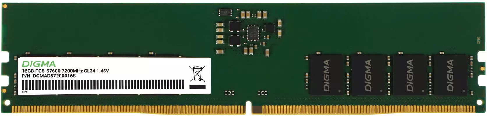 Оперативная память Digma DDR5 - 16GB, 7200 МГц, DIMM, CL34, RTL (dgmad57200016s)