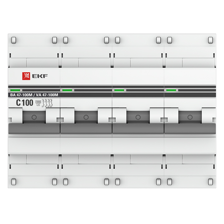 Автоматические выключатели ВА 47-100М с электромагнитным расцепителем 10кА EKF PROxima впитали в себя все преимущества предшествующей модели (взаимозаменяемы) и самые последние инновационные разработки. Производятся в одно-, двух-, трех- и четырехполюсном исполнениях.