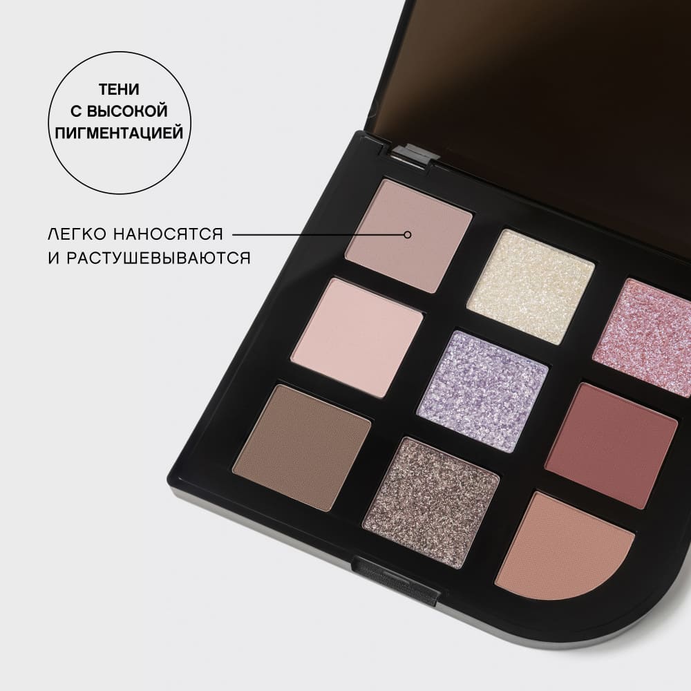 Тени легко наносятся и растушевываются благодаря тонкой текстуре и высокой пигментации. Палетка имеет элегантную упаковку квадратной формы с закругленным углом в сочетании с ярким и современным дизайном. <br>