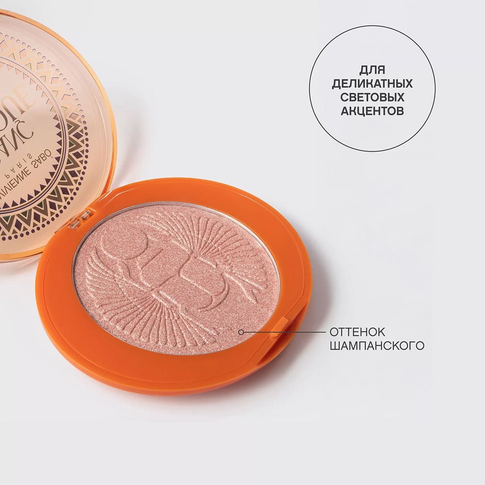 Хайлайтер оттенка шампанского позволяет деликатно расставить световые акценты, зашлифовать мелкие несовершенства и эффектно подчеркнуть достоинства кожи.