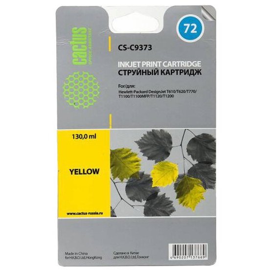 Картридж струйный Cactus CS-C9373 №72 фото желтый (130мл) для HP DJ T610/T620/T770/T1100/T1100/T1120/T1200