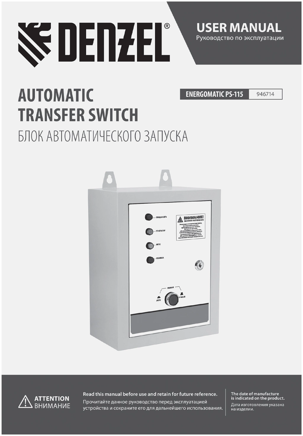 ОписаниеБлок Denzel ENERGOMATIC PS 115 автоматически запускает генератор при прекращении подачи электроэнергии в частных домах, дачных коттеджах, на небольших предприятиях и строительных объектах.