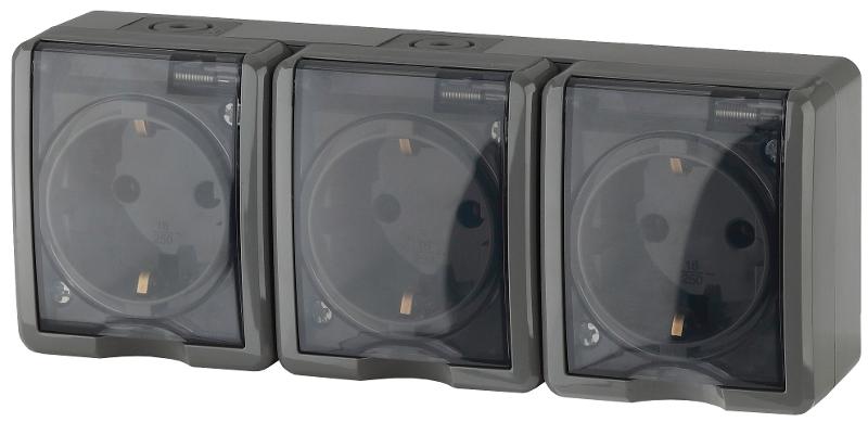 Розетка 3х2P+E IP54, шторки, 16АХ-250В, ОУ, Эра Эксперт, серый