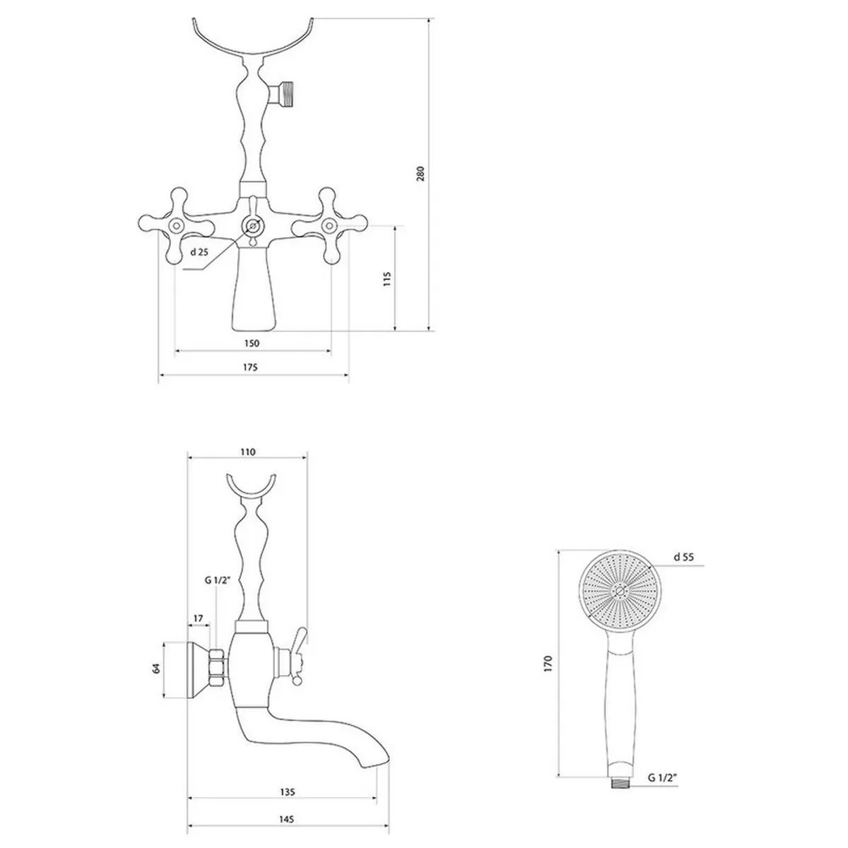 Описание товара Смеситель Славен для ванны Коттедж А (СЛ-ДВ-А30)