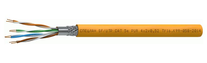 Кабель витая пара СПЕЦЛАН SF/UTP Cat 5е PUR 4х2х0.52 16546