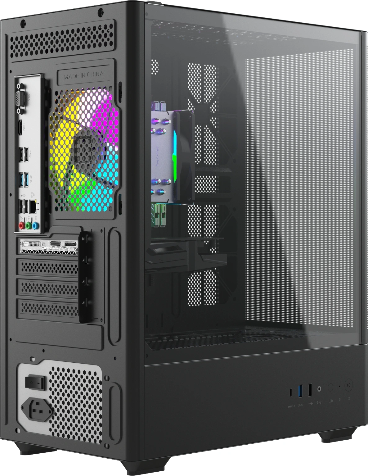 • Особенности конструкции подсветка, прозрачная боковая панель, сетчатая передняя панель (Mesh)