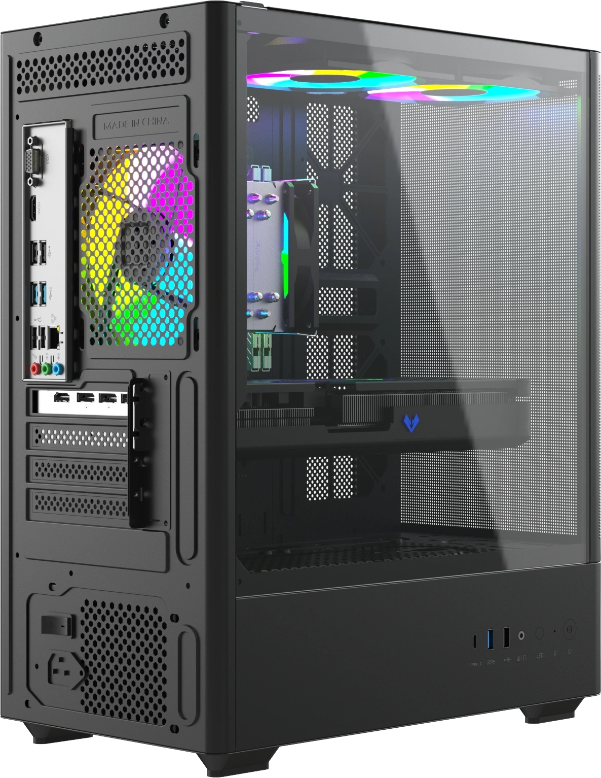 • Особенности конструкции подсветка, прозрачная боковая панель, сетчатая передняя панель (Mesh)
