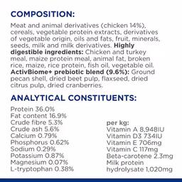 • Ингредиенты мясо и производные (курица 14%), злаки, масла и жиры, фрукты, семена