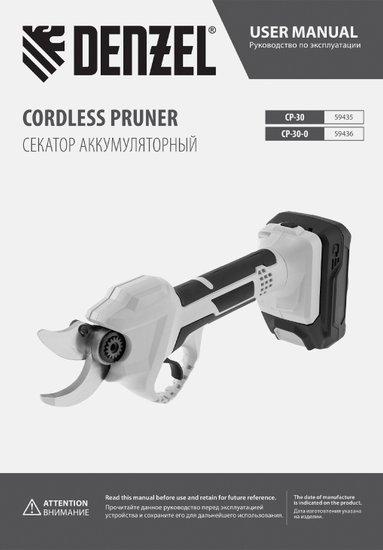 Комплектация- Секатор аккумуляторный- Лезвие запасное- Ключ гаечный 13 мм- Ключ шестигранный 2,5 мм- Руководство по эксплуатации с гарантийным талоном