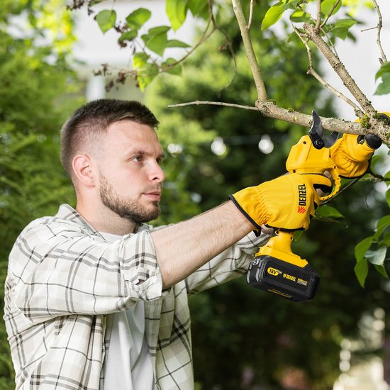 ✅ Секатор Denzel CP-30-0 — идеальный инструмент для срезания ветвей диаметром до 30 мм. Он станет незаменимым помощником для владельцев загородных домов, дач и садоводов, обеспечивая высокую эффективность работы благодаря компактному бесщеточному электродвигателю. Этот аккумуляторный секатор отлично подходит для труднодоступных мест и удаленных участков сада.✅ Инструмент работает от универсального аккумулятора Denzel 2Ач Li-ion, который совместим с любым инструментом 18V Denzel battery system серии IB (аккумулятор не входит в комплект). Это делает секатор удобным и многофункциональным решением для садоводов.✅ Прочность и долговечность лезвий, выполненных из стали SK5 и закаленных до твердости 55-60 HRC, обеспечивают длительное сохранение остроты. Это важное преимущество для тех, кто ищет надежный секатор для работы в саду.⚠️ Безопасность использования также на высоте: блокировка куркового выключателя предотвращает случайный запуск инструмента, а функция автоотключения отключает секатор через 10 минут бездействия, что повышает безопасность рабочего процесса.✅ Эргономичная форма инструмента обеспечивает комфортный захват, а наличие запасного подвижного лезвия в комплекте позволяет быстро заменить нож в случае поломки. Это делает Denzel CP-30-0 отличным выбором для тех, кто ценит надежность и удобство в работе.✅ Для безопасного хранения и транспортировки после выключения режущий узел переводится в сомкнутое положение, а в комплекте предусмотрен защитный чехол. Этот секатор — отличный выбор для садоводов, стремящихся к качеству и эффективности.✅ Секатор Denzel CP-30-0 — идеальный инструмент для срезания ветвей диаметром до 30 мм. Он станет незаменимым помощником для владельцев загородных домов, дач и садоводов, обеспечивая высокую эффективность работы благодаря компактному бесщеточному электродвигателю. Этот аккумуляторный секатор отлично подходит для труднодоступных мест и удаленных участков сада.✅ Инструмент работает от универсального аккумулятора Denzel 2Ач Li-ion, который совместим с любым инструментом 18V Denzel battery system серии IB (аккумулятор не входит в комплект). Это делает секатор удобным и многофункциональным решением для садоводов.✅ Прочность и долговечность лезвий, выполненных из стали SK5 и закаленных до твердости 55-60 HRC, обеспечивают длительное сохранение остроты. Это важное преимущество для тех, кто ищет надежный секатор для работы в саду.⚠️ Безопасность использования также на высоте: блокировка куркового выключателя предотвращает случайный запуск инструмента, а функция автоотключения отключает секатор через 10 минут бездействия, что повышает безопасность рабочего процесса.✅ Эргономичная форма инструмента обеспечивает комфортный захват, а наличие запасного подвижного лезвия в комплекте позволяет быстро заменить нож в случае поломки. Это делает Denzel CP-30-0 отличным выбором для тех, кто ценит надежность и удобство в работе.✅ Для безопасного хранения и транспортировки после выключения режущий узел переводится в сомкнутое положение, а в комплекте предусмотрен защитный чехол. Этот секатор — отличный выбор для садоводов, стремящихся к качеству и эффективности.