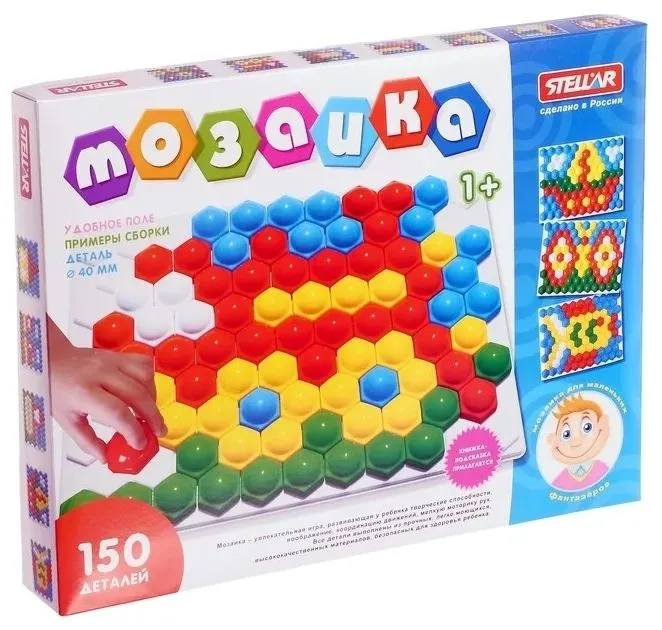 Мозаика с крупными круглыми фишками вполне подойдет для того, чтобы стать первой мозаикой для малыша. Благодаря форме и размеру фишки абсолютно безопасны для ребенка и способствуют формированию правильного захвата предметов. Также с помощью мозаики можно изучать цвета и понятие длины, выкладывая из фишек разные полоски.