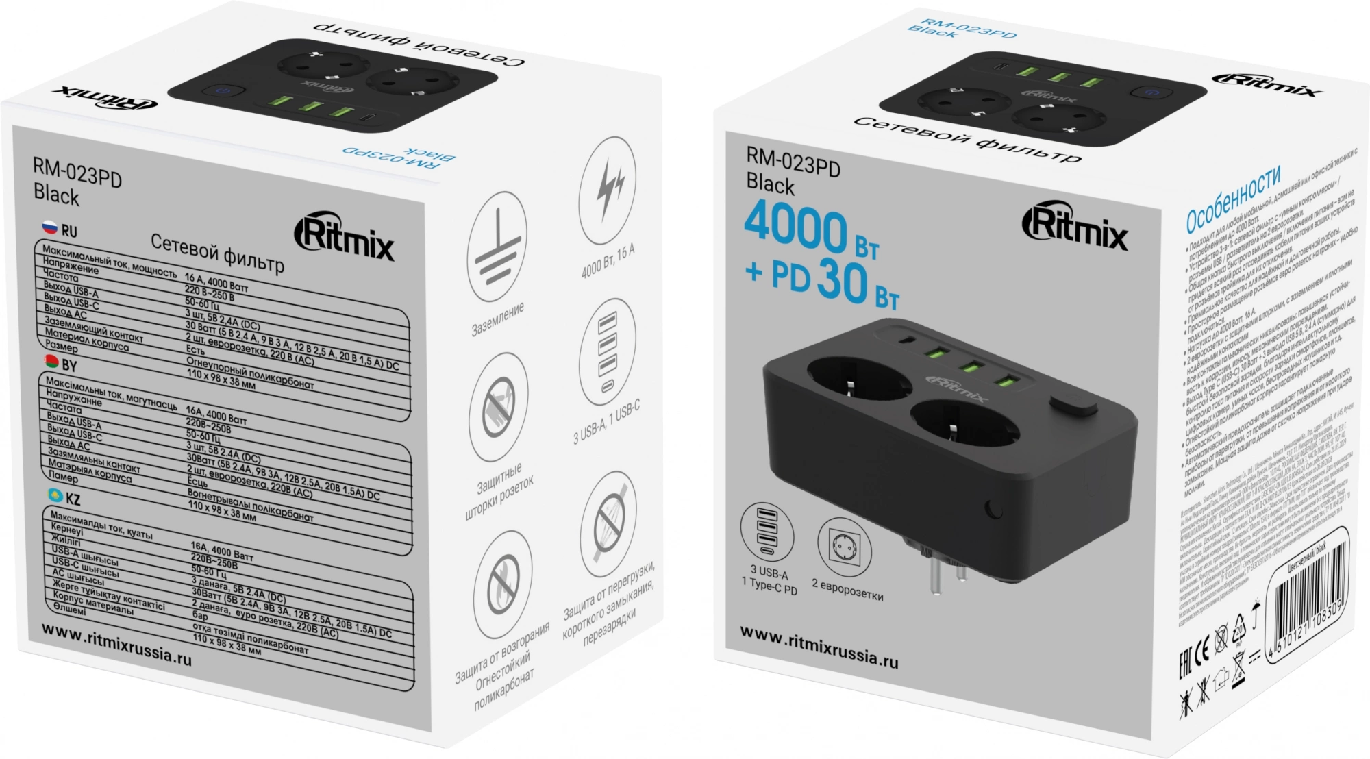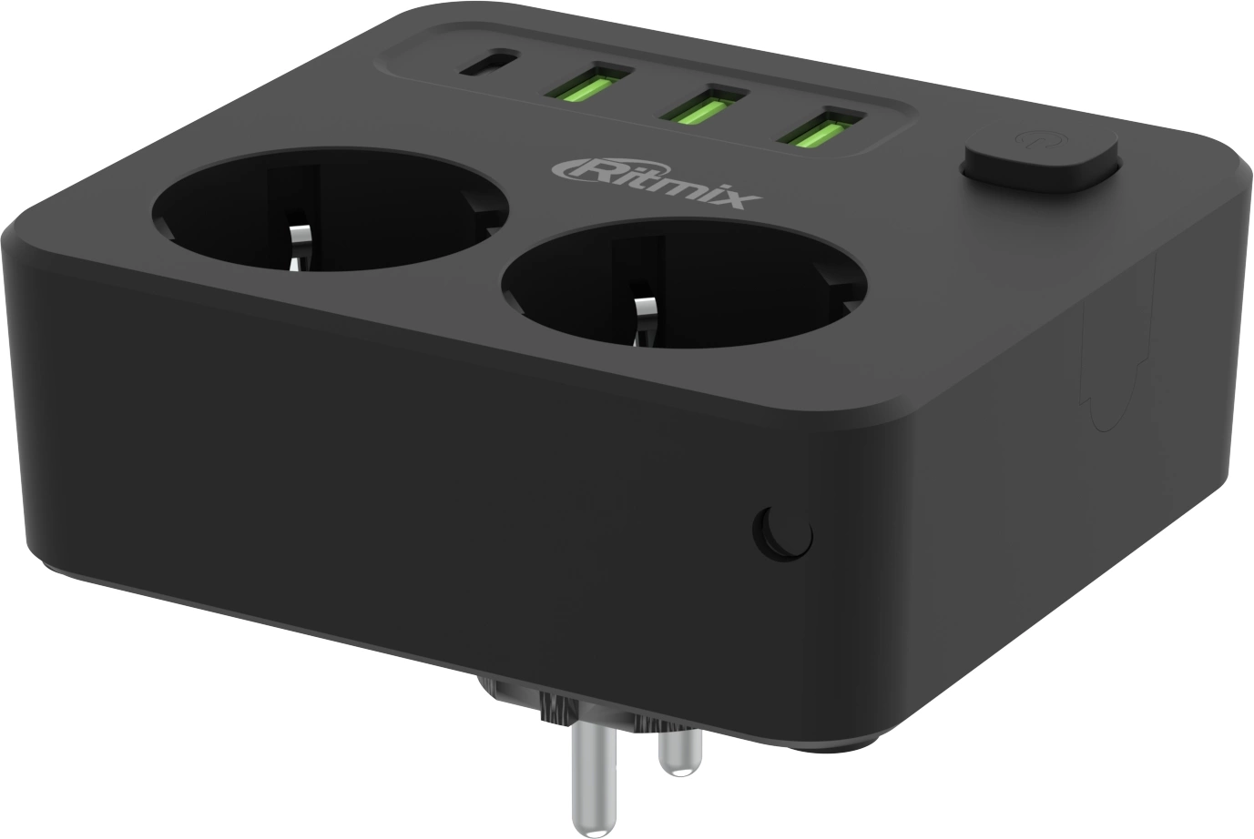 • Особенности Cетевой фильтр с 3 выходами USB-A + 1 выходом USB-C и двумя евророзетками 220В.