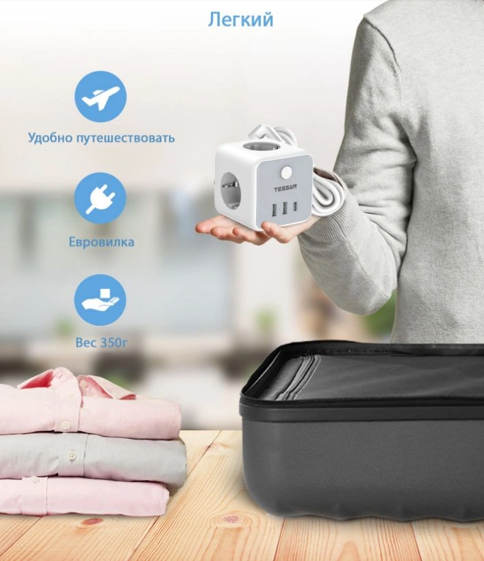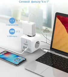 ОсобенностиСетевой фильтр с 3 розетками 220В, 2 USB и 1 USB-C портами и кнопкой питания. Эргономичный дизайн. LED индикатор. Огнеупорный материал корпуса. Надежные плотные разъёмы. Шторки защиты от детей.