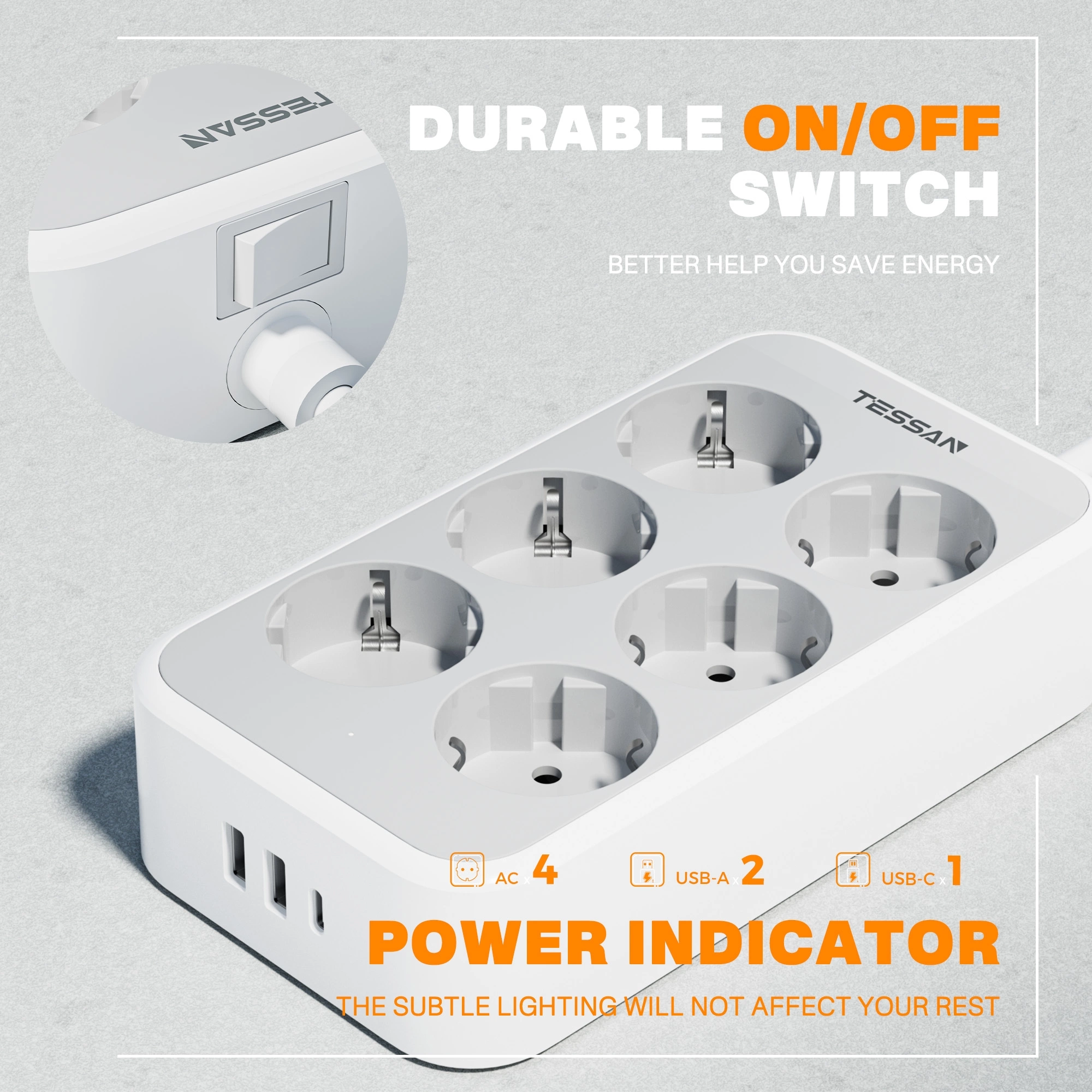 ОсобенностиСетевой фильтр с 6 розетками 220 В, 2 USB-A и 1 USB-C портами и кнопкой питания. Эргономичный дизайн. LED индикатор. Огнеупорный материал корпуса. Высококачественный медный кабель. Надёжные плотные разъёмы. Шторки защиты от детей