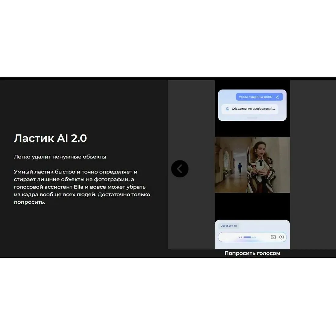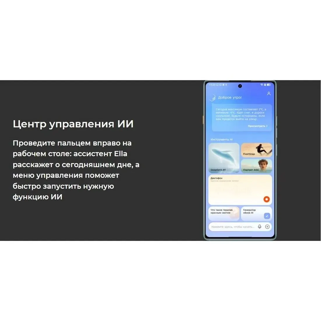 Базовая модель в серии стильных камерофонов Camon 40 со встроенным умным ассистентом Ella на базе TECNO AI. Умный ассистент Ella с поддержкой русского языка понимает голосовые команды и выполняет запросы — от редактирования фото до вызова такси. Tecno CAMON 40 также оснащён функциями генерации текстов и картинок, умного поиска в интернете, решения математических задач, переводчиком в реальном времени и возможностью расшифровки аудиозаписей и звонков. И это только небольшая часть доступных опций встроенного искусственного интеллекта.