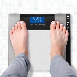Напольные весы с функцией памяти и диагностикой массы тела предназначены для взвешивания массы тела в бытовых условиях, являются необходимым домашним прибором для тех, кто уделяет достаточное внимание своему здоровью и здоровью своих близких. Прибор определяет содержание доли жировой ткани, содержание доли мышечной ткани, содержание доли воды в организме. Данная модель имеет увеличенный диапазон измерений от 2,5 до 180 кг, поэтому подходит для взвешивания не только взрослых, но и детей, а также подходит для взвешивания домашних животных. Регулярные взвешивания — это практически каждодневные ритуалы для будущих мам, для спортсменов. Если вы стремитесь стать стройнее, этот прибор станет вашим союзником для победы над лишним весом. По мнению диетологов: привычка каждый день вставать на весы мотивирует человека к правильному питанию и физическим нагрузкам.Продуманная конструкция весов гарантирует пользователю точность взвешивания, а также удобство и безопасность. Измерения выполняются по 4 высокочувствительным датчикам и моментально отображаются на цифровом дисплее. Помимо высоких качественных характеристик, весы представляют собой стильную деталь интерьера. Стекло мятного цвета, отсутствие кнопок, выключателей, окошек-дисплеев на лицевой части корпуса придает изделию оригинальный современный дизайн. Весы подобного дизайна уместны не только дома, но и в гостиницах, саунах, бассейнах. Основные преимущества:1. Точность взвешивания с погрешностью менее 100 грамм. Результат измерений по четырем высокочастотным датчикам стабильный.2. Увеличенный предел максимальной нагрузки до 180 кг.3. Функция памяти: весы сохраняют в соей памяти персональные данные 12 пользователей.4. Вес тела — слишком относительный показатель, который сам по себе без учета роста, пола и возраста, не дает никакой полезной информации, и только данная модель обладает функцией диагностического рассчета массы тела. Эта опция позволит вам разработать верную стратегию работы над телом с учетом индивидуальных показателей. Вычисленные данные подскажут в какую сторону необходимо скорректировать диету, увеличить или уменьшить интенсивность физических занятий.5. Возможность выбора единиц измерений: килограммы (kg) → фунты (lb). Вам не придется самостоятельно конвертировать показания.6. Экономичность: весы автоматически отключаются через 10 секунд, если прибор не используется.7. Цифры на цифровом LCD дисплее крупные, результат измерения видно четко, высота шрифта 207 мм.8. Удобная индикация разряда и перегрузки.9. Тонкий корпус позволяет удобно хранить, задвигая под мебель.10. Подробная инструкция на русском языке.Технические характеристики:Тип: электронные весыФункция памятиКоличество пользователей: 12Опция диагностики массы тела: естьОтображаемые показатели (kg/lb): вес/жир/вода/кости/мышцы/калорииПредел взвешивания: 180 килограмм Размеры платформы весов: 28х28 см Высота (от пола): 2,5 см Размер цифр на дисплее: 2,7 см Подсветка символов дисплея Автовключение, автовыключение Толщина стекла: 6 мм Толщина корпуса: 2,5 смРазмер коробки: 35,5х36х5,2 смВес: 1480 гМатериал платформы: стекло, стальЦвет корпуса: прозрачное стекло, сереброПитание: батарейка AAA «мизинчиковая» – 2 шт. (в комплекте)Гарантия: 1 год