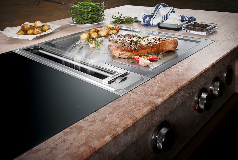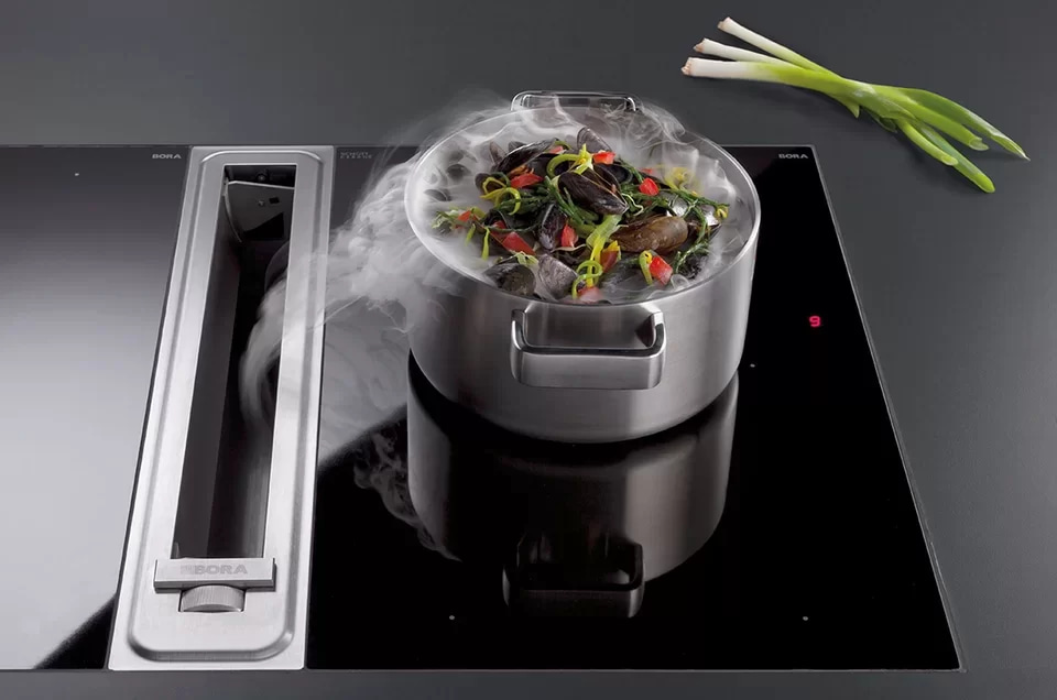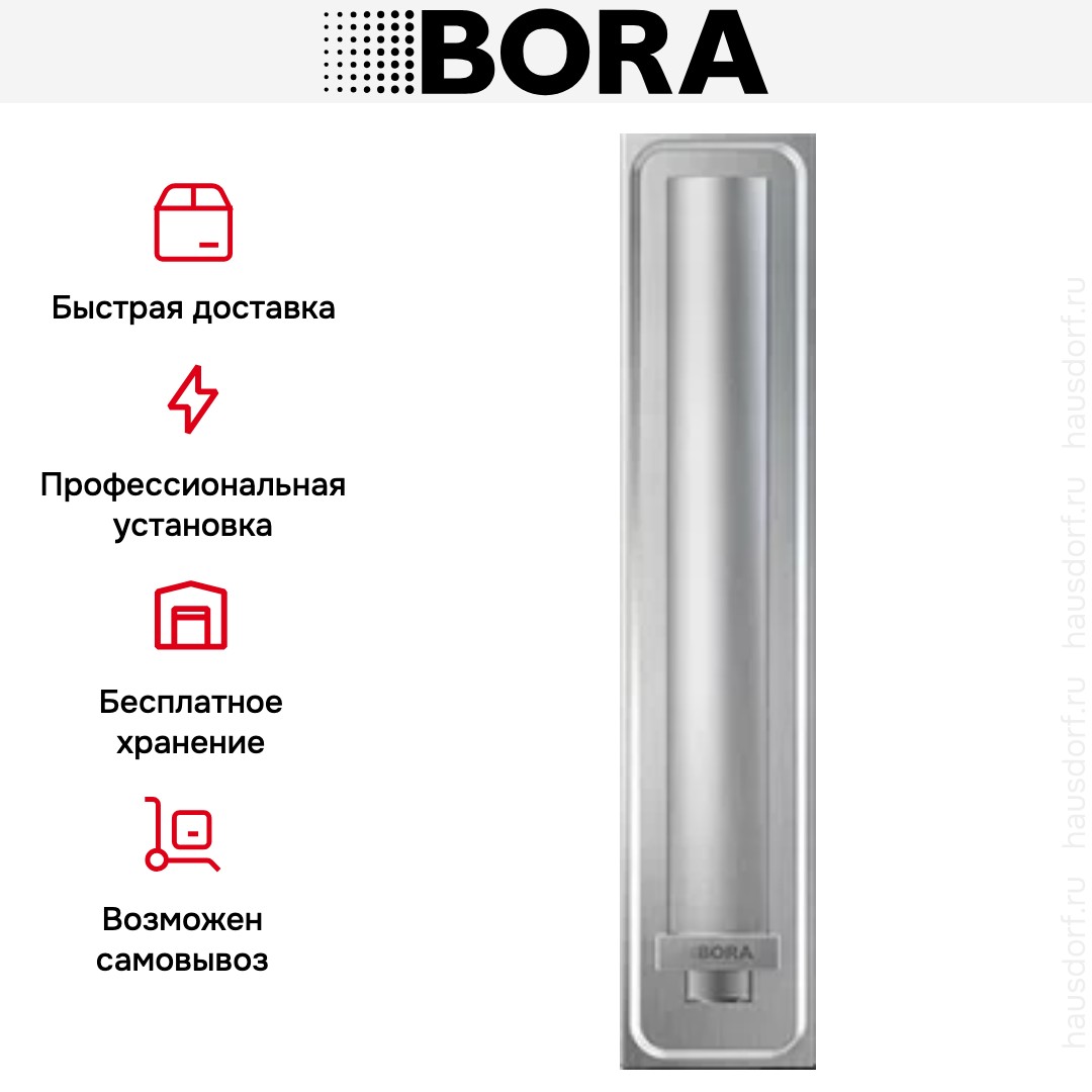 BORA PL540E — встраиваемая в столешницу вытяжка с жироулавливающим фильтром из нержавеющей стали. Модель подходит для совместной установки со всеми варочными панелями BORA Professional. Отвод воздуха возможен как влево, так и вправо. Для удобства эксплуатации предусмотрена автоматика отсроченного выключения.