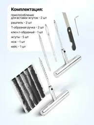 • Комплектация рашпиль (2 шт.), ручка (T-образная) (2 шт.), кейс, ключ (г-образный), жгут (5 шт.), нож, протяжка (2 шт.)