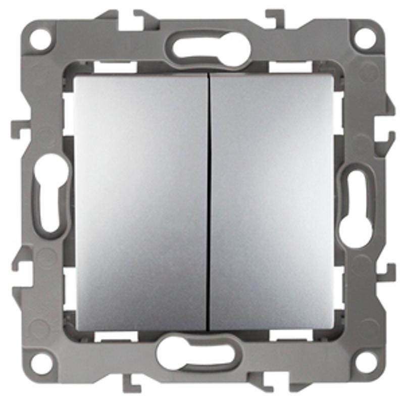 Выключатель 2-клавишный серии Эра 12 скрытой установки механизм цвет алюминий 12-1104-03. Номинальные характеристики 10А 250В . Сделан из поликарбоната, оснащёно автоматическими клеммами для быстрй и надёжной фиксации жил кабеля в механиме. Парные клеммы обеспечивают соединение шлейфом. Монтаж в подрозетник производится и на лапки, и на винты. Рамки приобретаются отдельно.