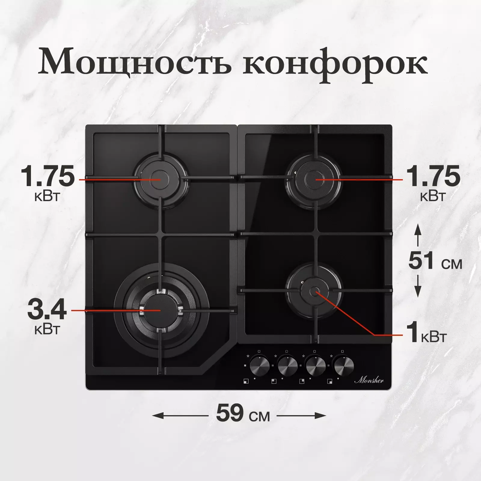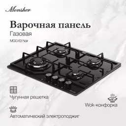 Газовая варочная поверхность Monsher Hi-tech MGG 63 Noir черный (78638)