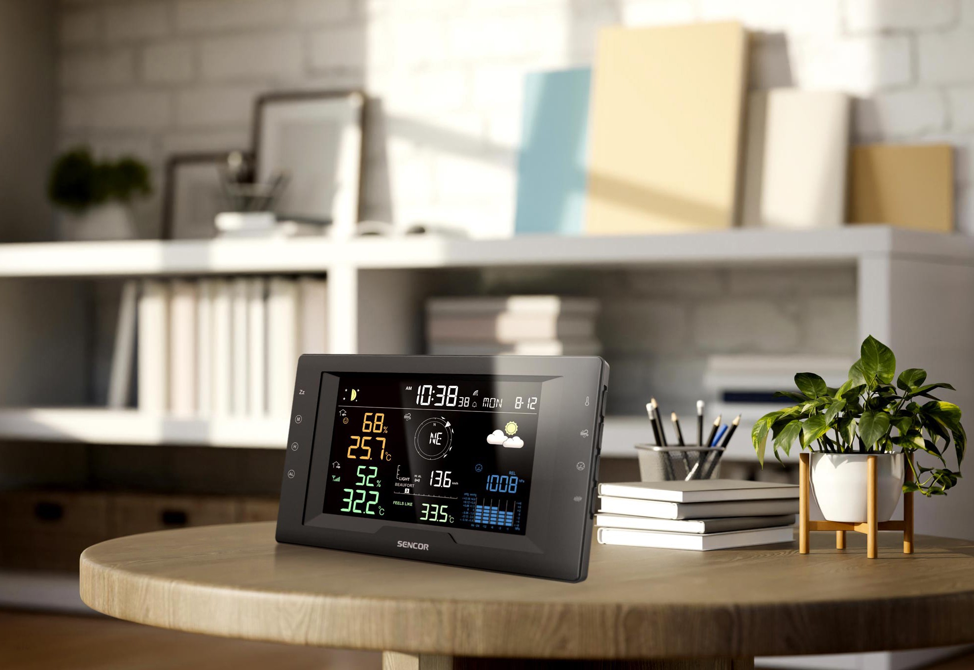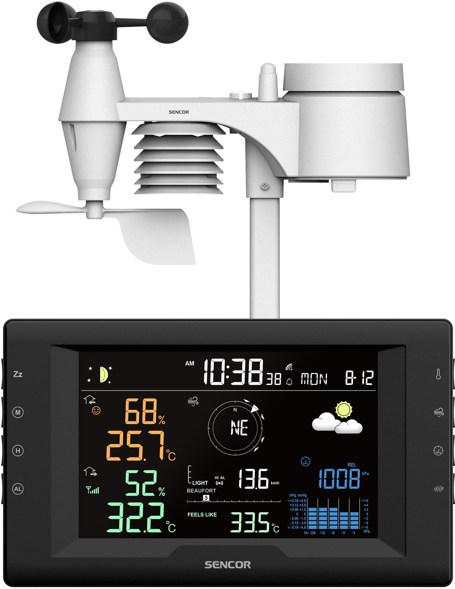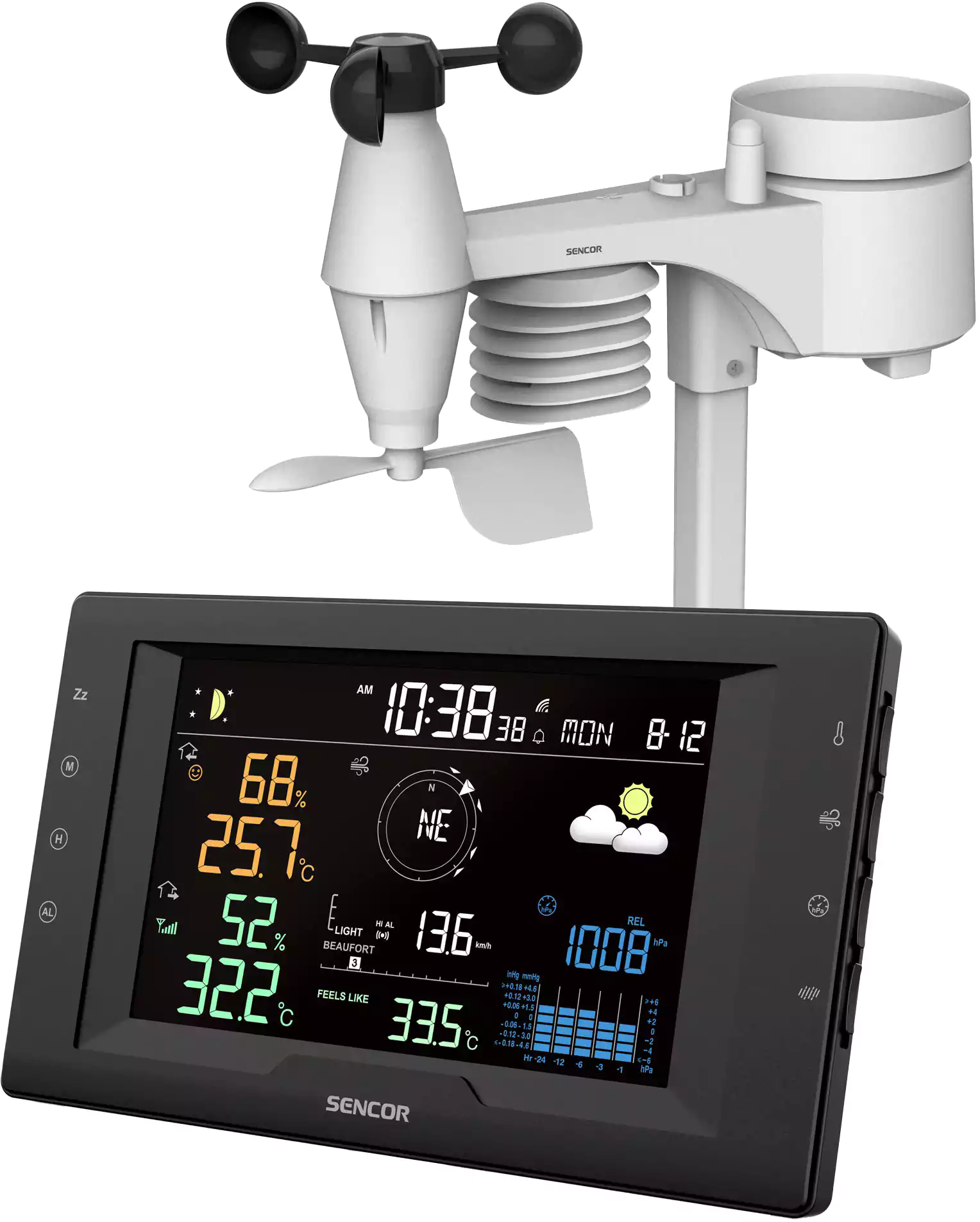 • Измерения прогноз погодывнутренняя температуравнешняя температуравнутренняя влажностьвнешняя влажностьатмосферное давлениескорость и направление ветрауровень осадковточка росышкала Бофорта