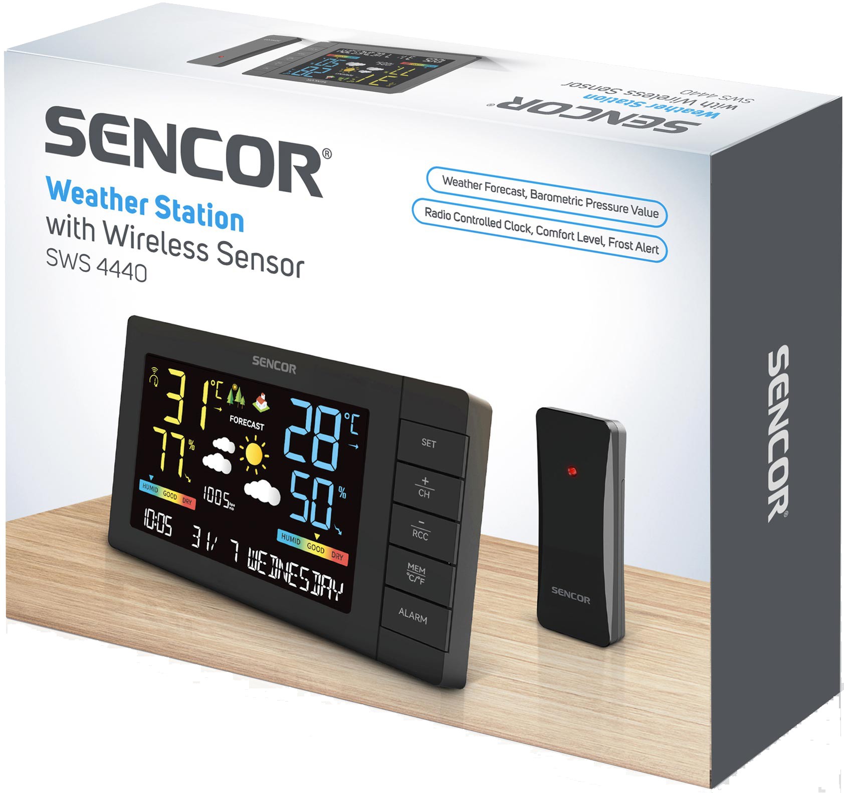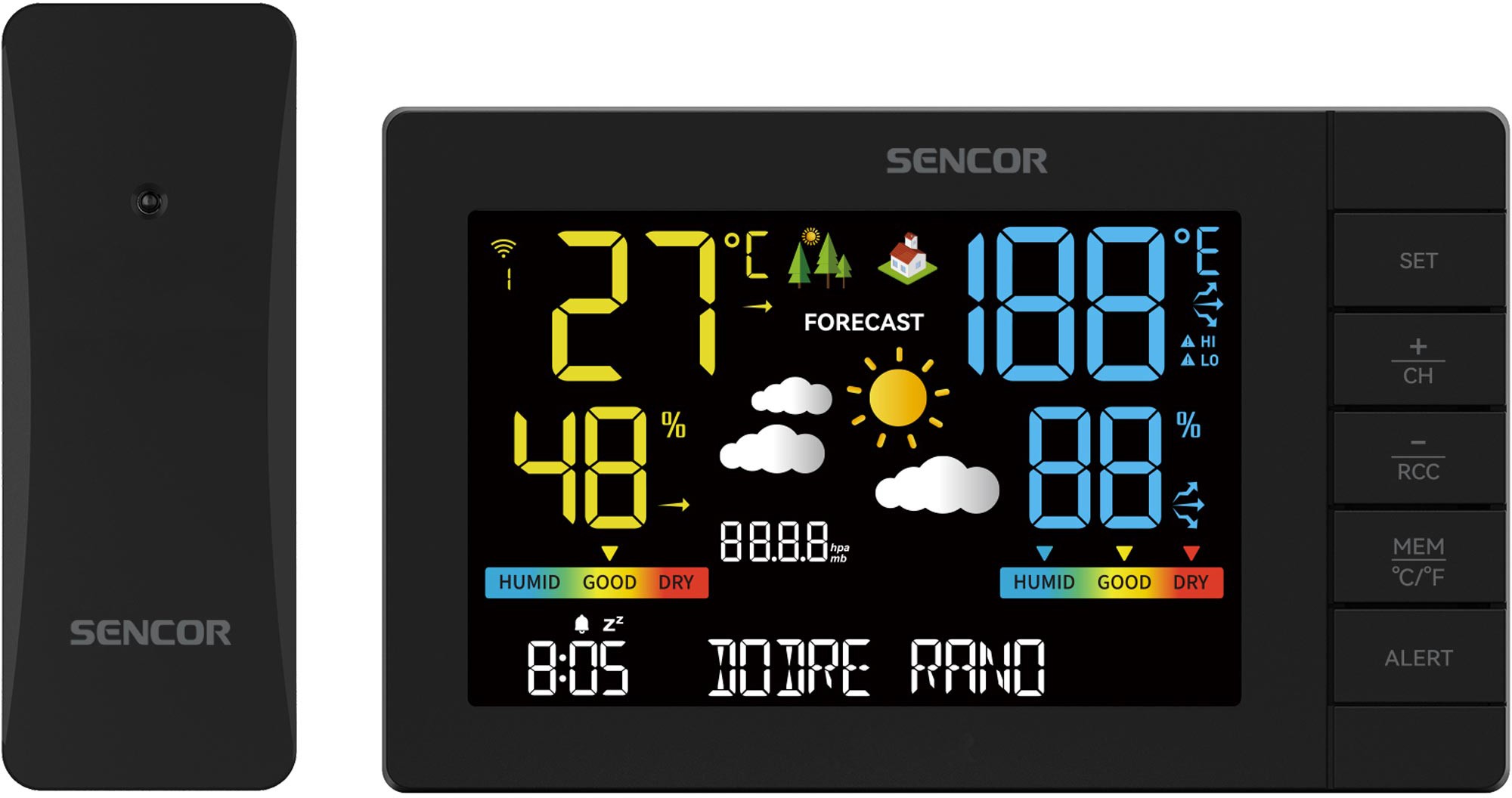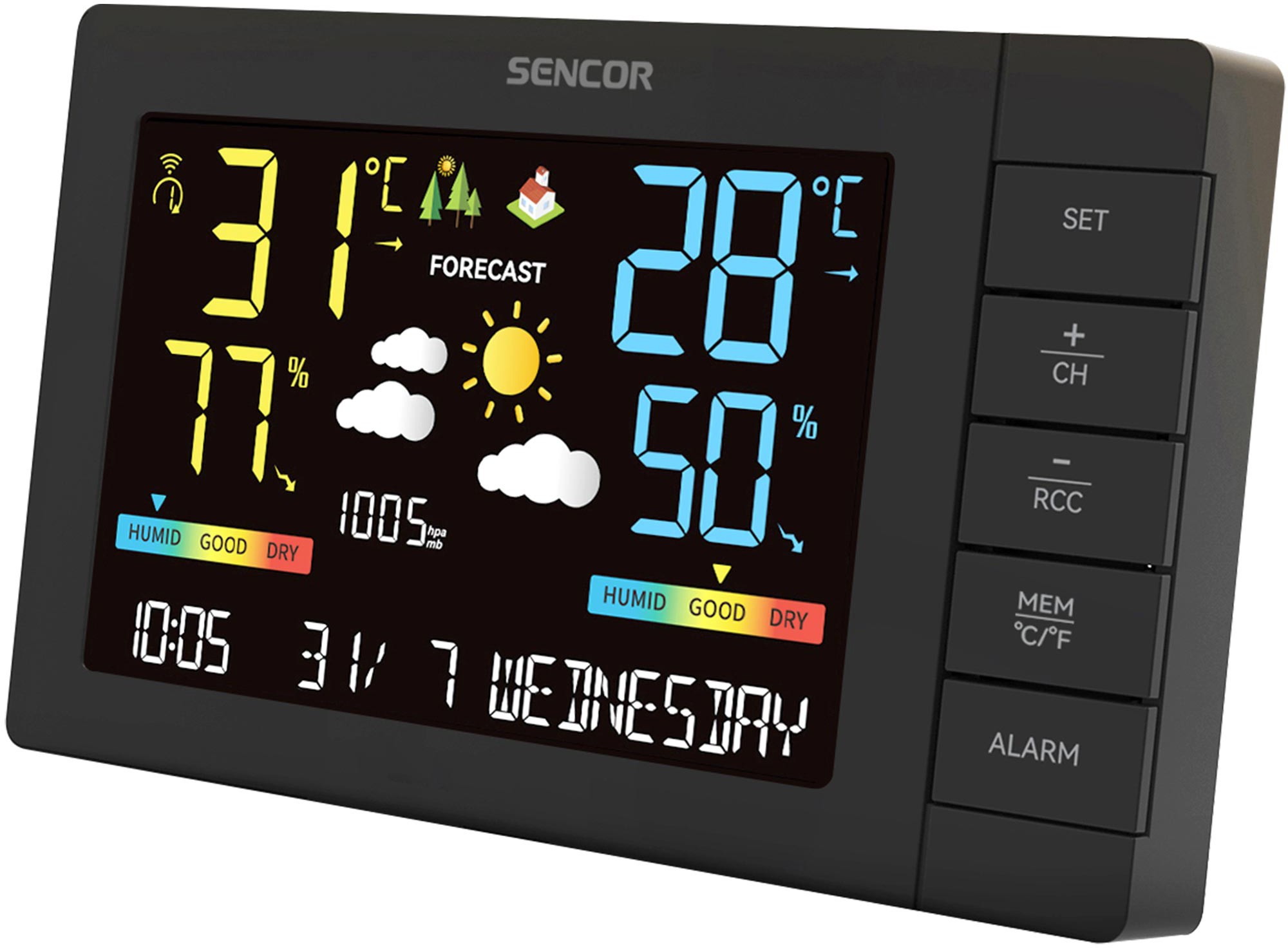 • Дополнительно отображение тренда температурподсветка дисплея / 3-уровневая /часы / DCF77 /будильник / с функцией повтора сигнала /календарь