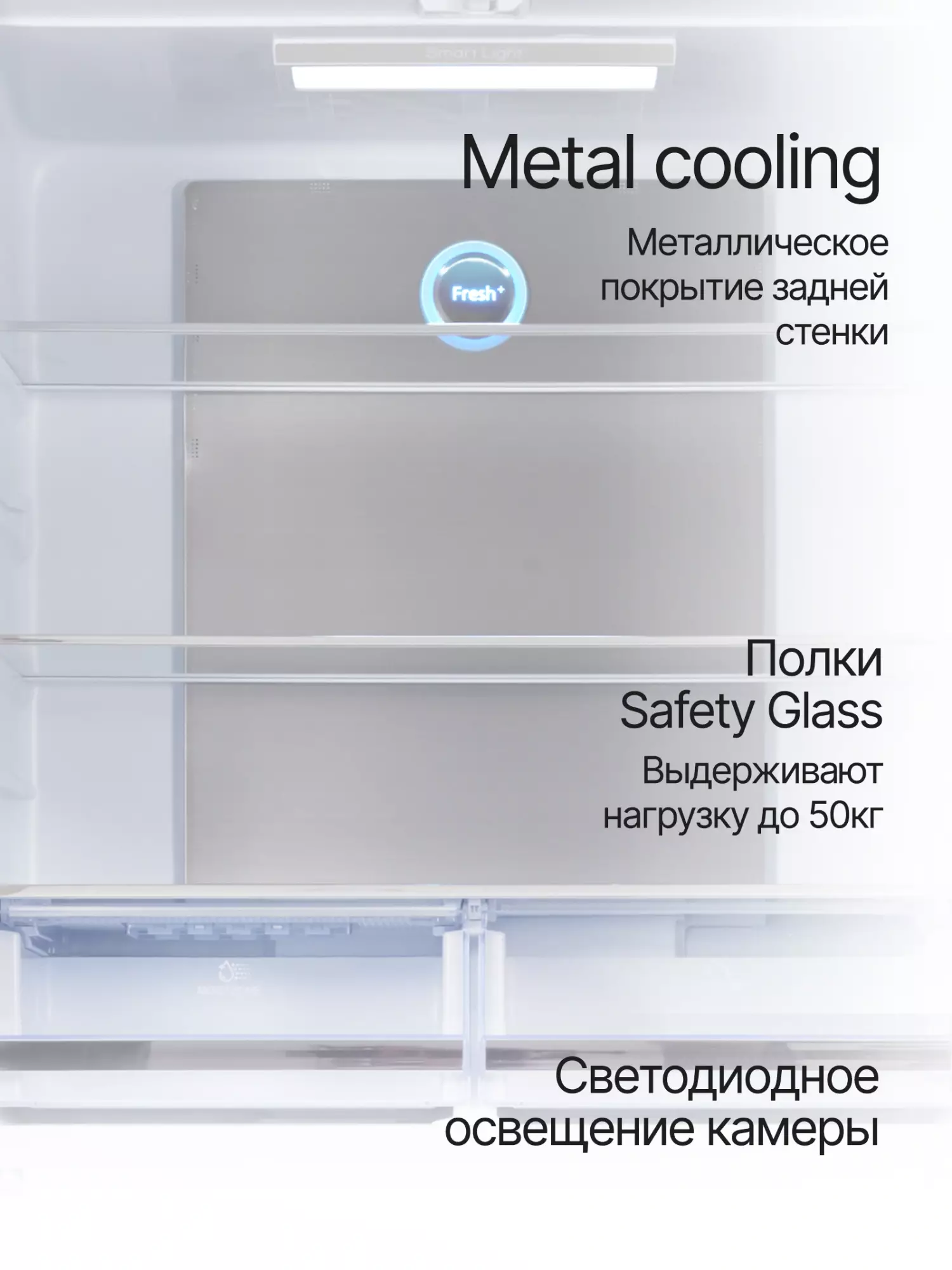 • Особенности Светодиодное освещение камеры, Фасад стеклянный, Полка для яиц - 2шт