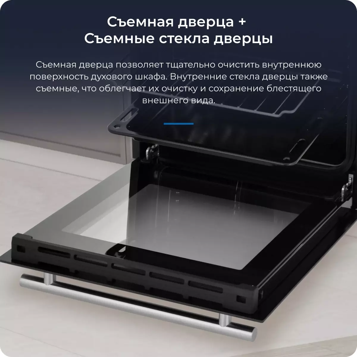 • Полностью стеклянная внутренняя поверхность дверцы духовки ДА