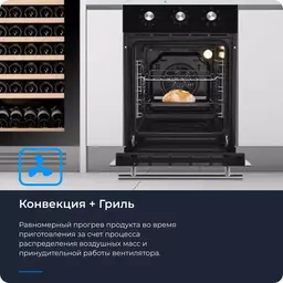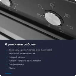 • Режимы духовки Верхний и Нижний Нагрев с Вентилятором, Верхний и Нижний Нагрев, Нижний Нагрев, Нижний Нагрев с Вентилятором, Двойной Гриль, Гриль