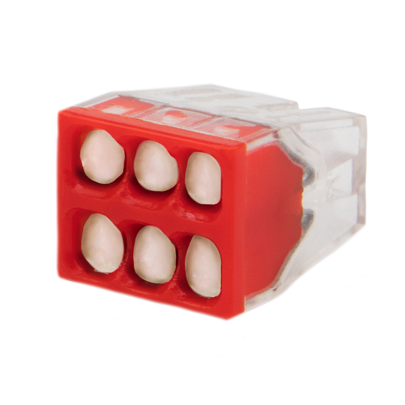 Компактный прозрачный корпус удобен для контроля соединения, а яркая цветовая разметка способствует визуальному различию клемм по количеству проводников.