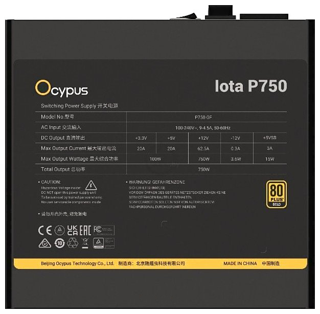 Блок питания для компьютера Ocypus Iota P750 750W Black (Iota-P750-G1FFBK024X-EU)