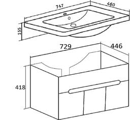 Тумба с умывальником Runo Парма 75 3 двери + Omega 75 (подвесная)