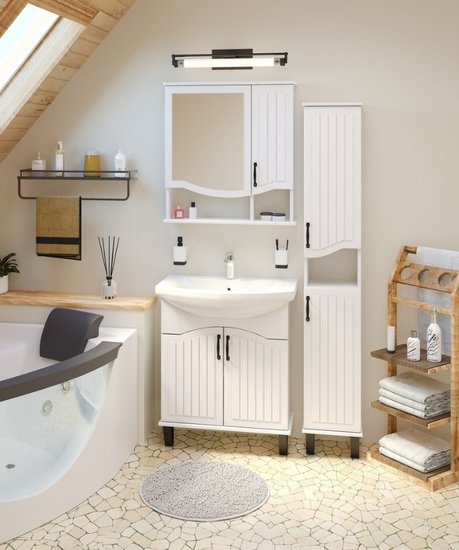 Тумба с умывальником Runo Марсель 65 + Классик 65 (напольная, белый)