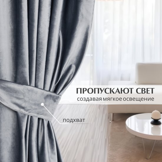Velvet 150x270 + Гардина Вуаль 300х270 (серый, белый)