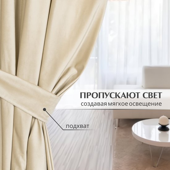 Velvet 150x260 + Гардина Вуаль 300х260 (кремовый, белый)