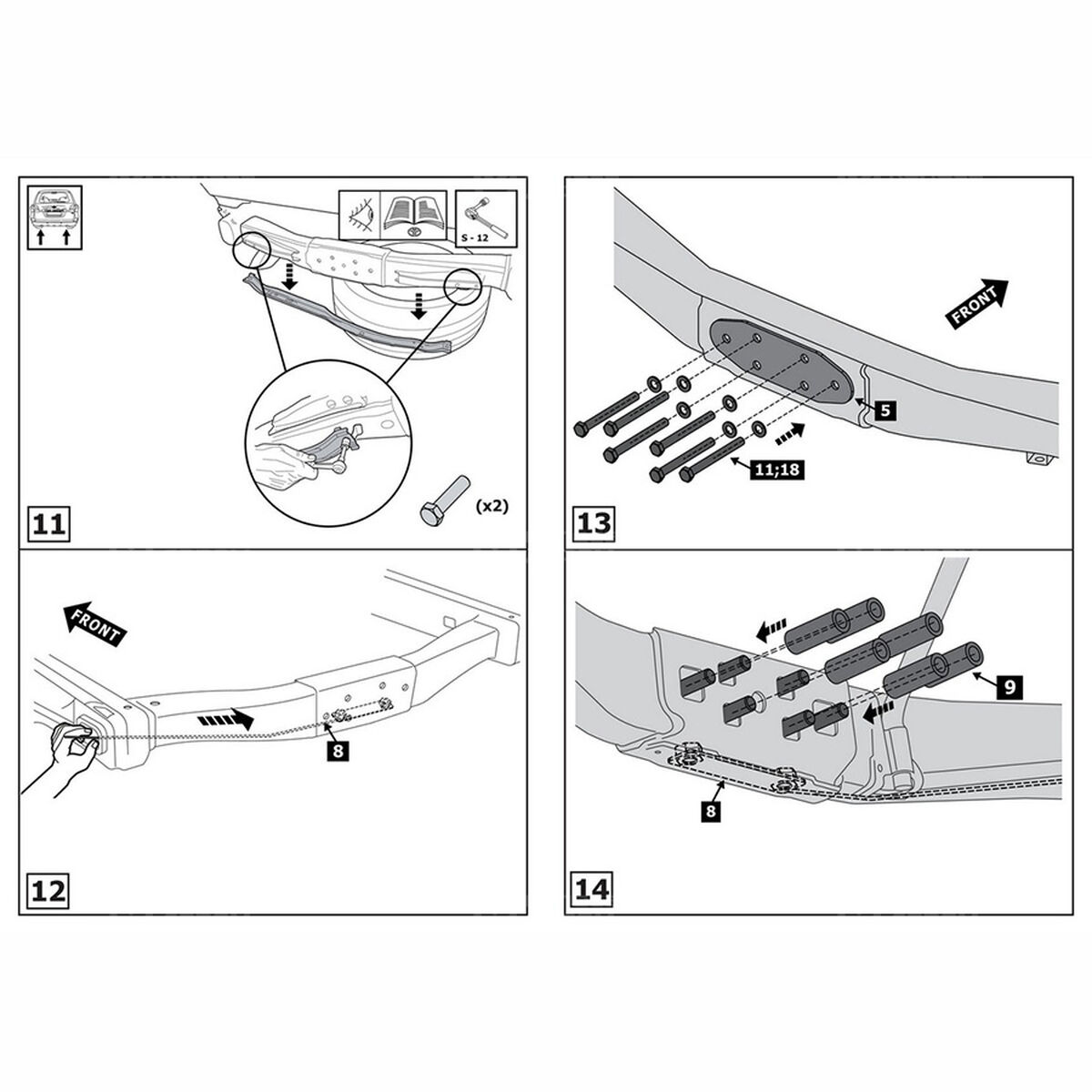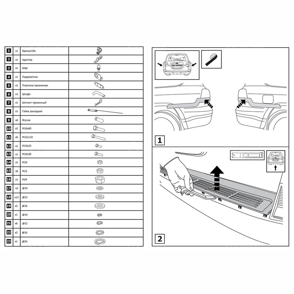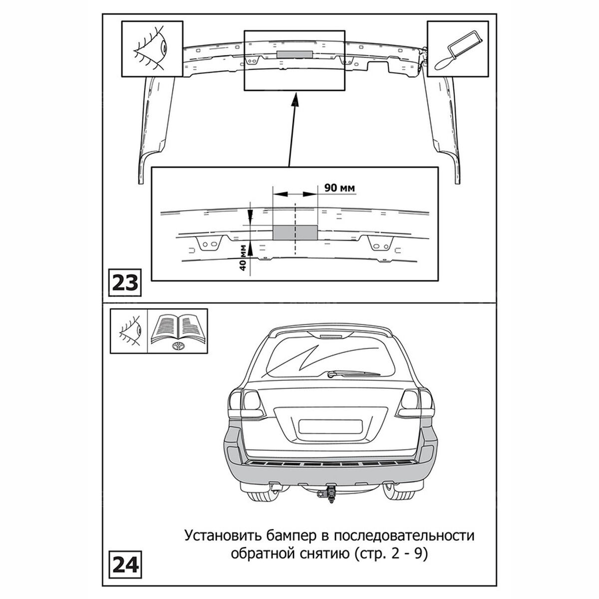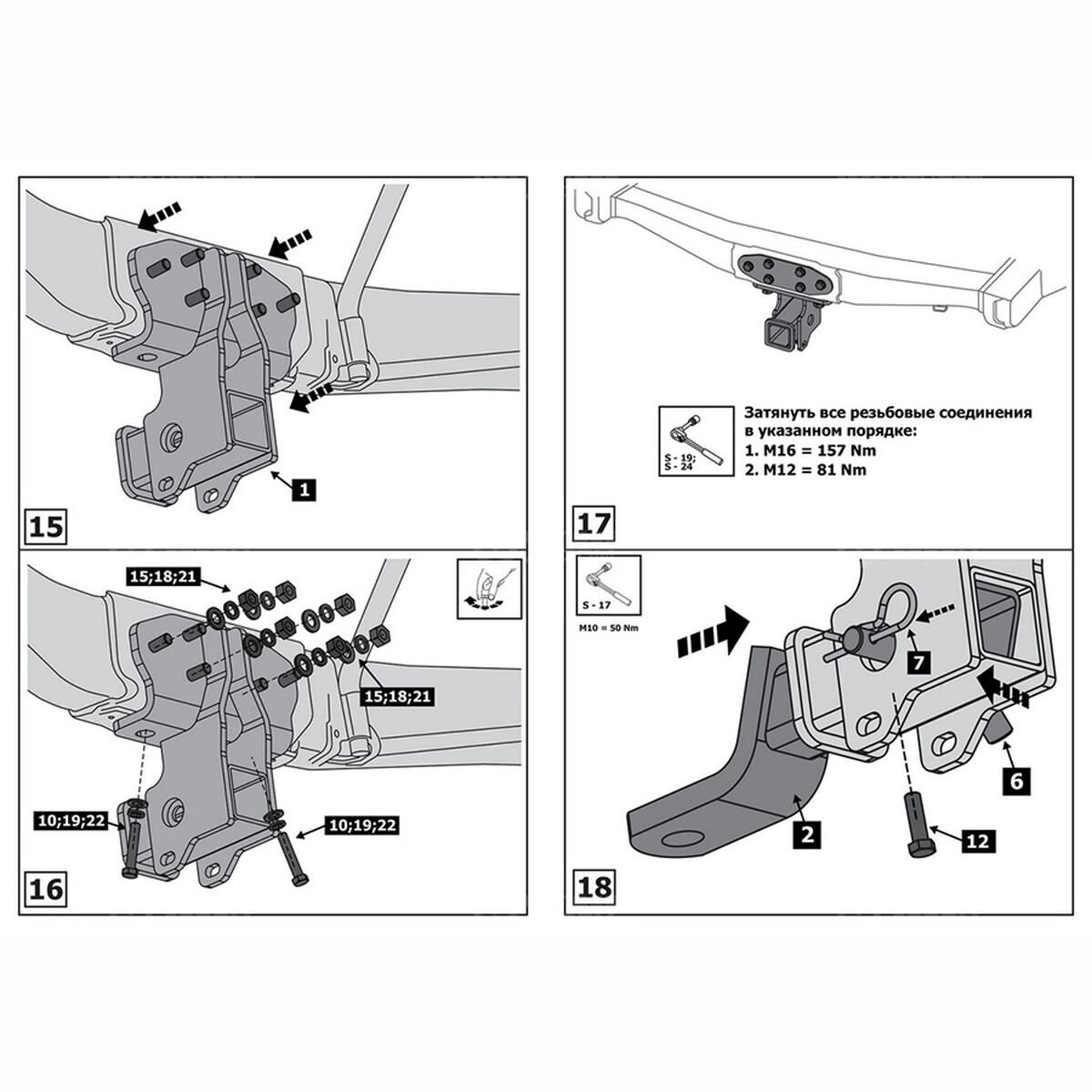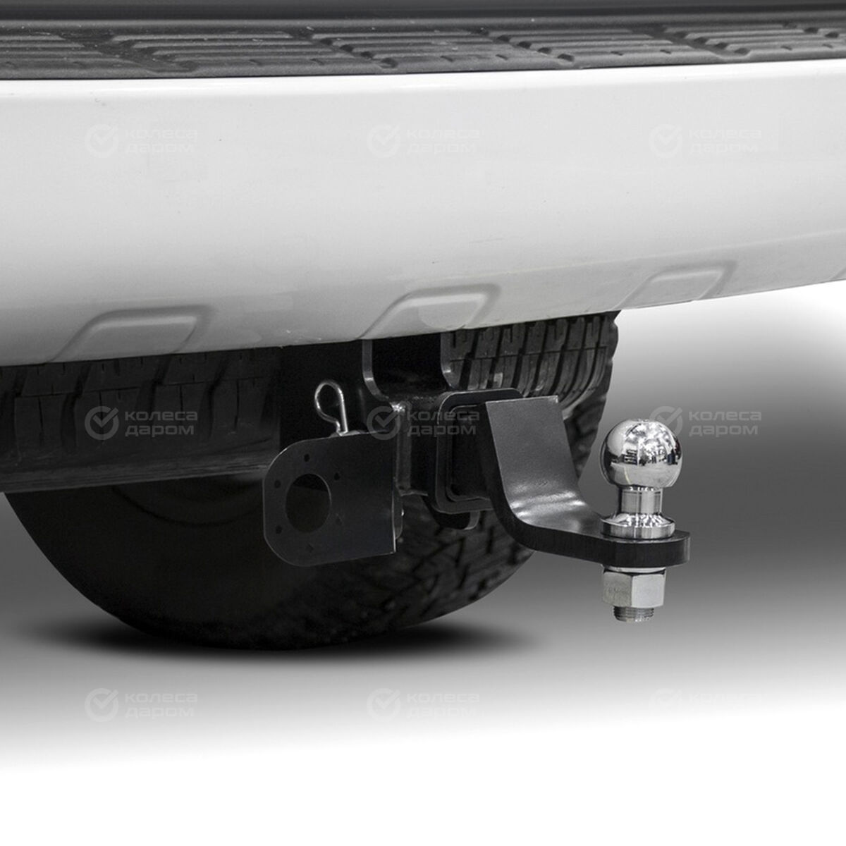 Выдерживает большую тяговую нагрузку: горизонтальную — 2500 кг, вертикальную — 120 кг. По форме, размеру, конструкции в точности повторяет заводской аналог. Монтаж требует снятия и доработки бампера: нужен невидимый вырез в нём. Крепёж — в комплекте.